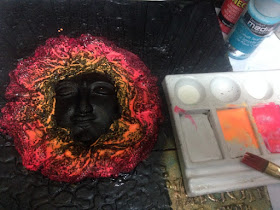 I used Cheese Cloth and Craft Cement and a face mold to create my composition.........